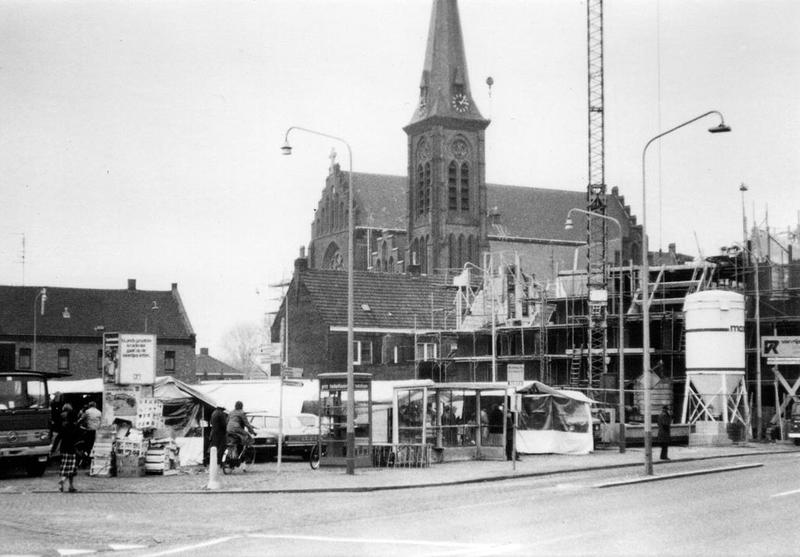 Diversen | De wekelijkse markt op het Raadhuisplein met op de achtergrond de in aanbouw zijnde winkels en appartementen. | Raadhuisplein | Reuver | |||||