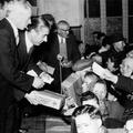Diversen | Het bestuur van coöperatie "Ons Belang" deelt gratis feestpakketten uit bij de gelegenheid van het 40 jarig jubileum in zaal Paar. | Rijksweg 89 | Reuver | 1954 | ||||