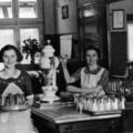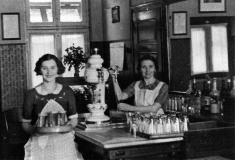 Café / Restaurant / Cafetaria | Het interieur van café Janssen aan de kerk met achter de tap mevrouw Nellie Janssen en op de voorgrond dochter Lien. | Pastoor Vranckenlaan 7 | Reuver | |||||