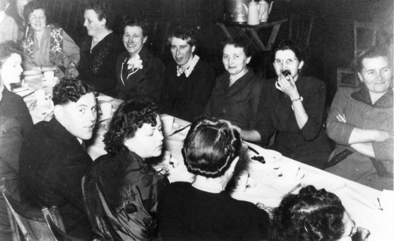 De jaarlijkse feestavond van de Middenstandsvereniging in Reuver. Links Jo Gommans. Rechts in het midden Maria van Gassel - Goossens. Links van haar mevr. Nelly Janssen (café aan de kerk) |
