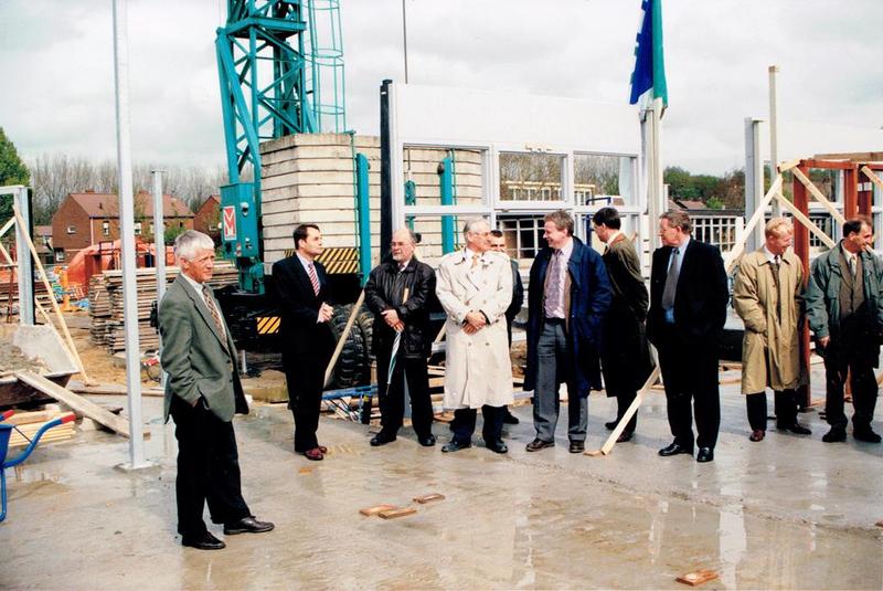 Onderwijs | Wethouder Gerard Ligthart met zijn collega's in afwachting van het leggen van de eerste steen bij het multifunctioneel centrum "de Meander". | Sint Jozefweg 30 | Offenbeek | 4-5-1999 | 1999 | |||