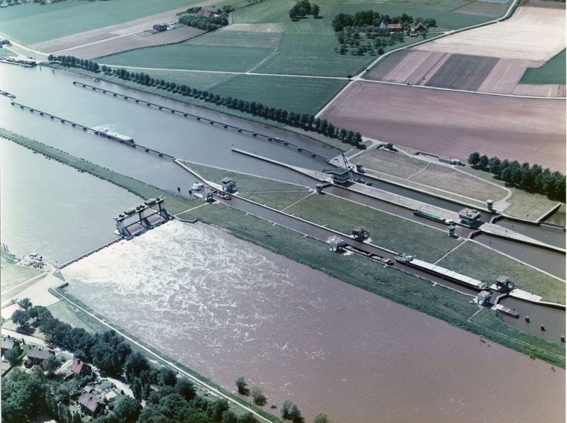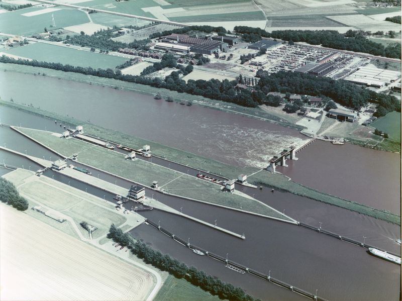 Luchtfoto's | Luchtfoto van de stuw Belfeld | Aan de stuw | Belfeld | 1987 | ||||