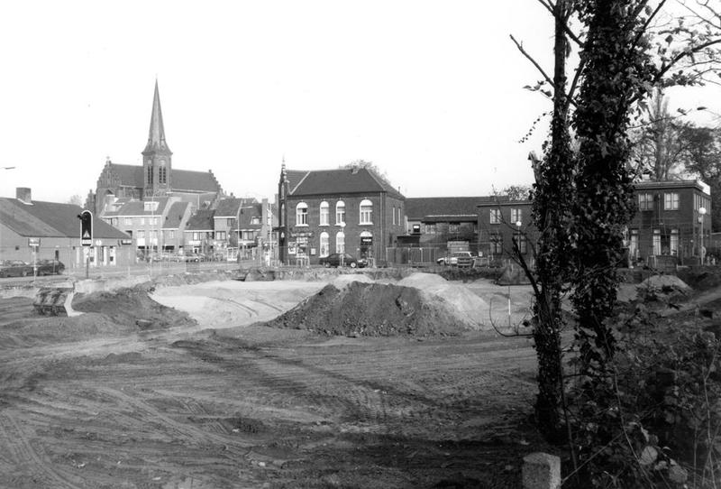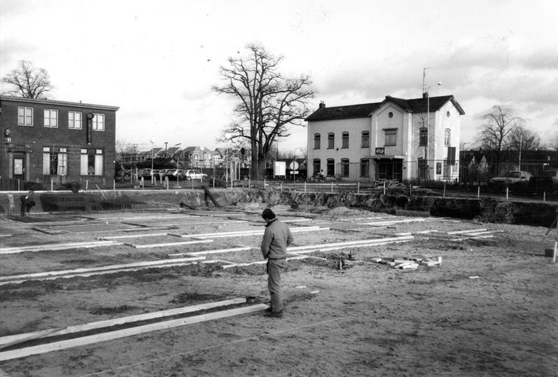 De woningen aan de zuidkant van de Stationstraat zijn afgebroken en op de vrijgekomen plek komt een nieuwe Rabobank. Op de achtergrond de woningen aan de Rijksweg. |