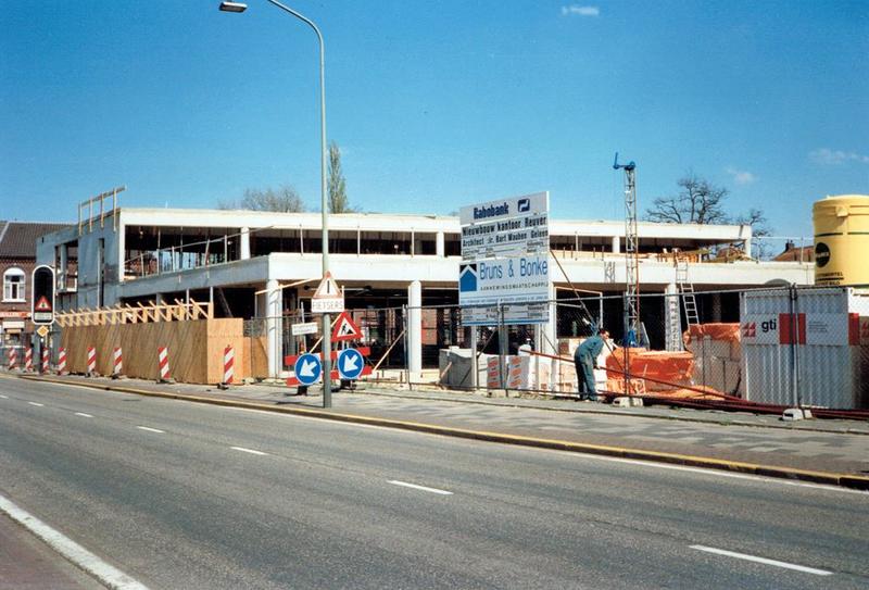 Gebouwen overige | De bouw van de nieuwe Rabobank gezien vanaf het stationsplein | Stationstraat 2 | Reuver | Mei 1993 | ||||