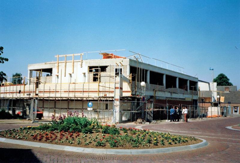 Gebouwen overige | De bouw van de Rabobank gezien vanaf het Raadhuislpien. | Stationstraat 2 | Reuver | Mei 1993 | ||||