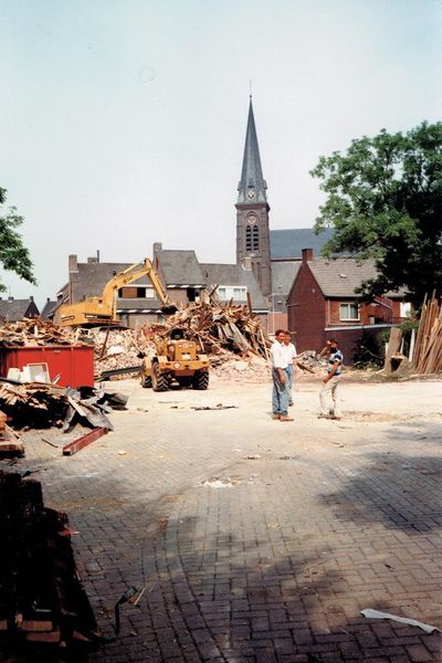De afbraak van de panden van de winkel van Tim (Timmermans) en drogisterij Cremers is gestart. De gebouwen moesten plaats maken voor een nieuw winkelcentrum (Passage) met hierin onder andere een Albert Heijn winkel. |