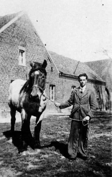Oorlog | Vóór hoeve De Kamp staat Jan Wachter (een van de onderduikers) | Kesselseweg 41 | Reuver | 1944 | ||||