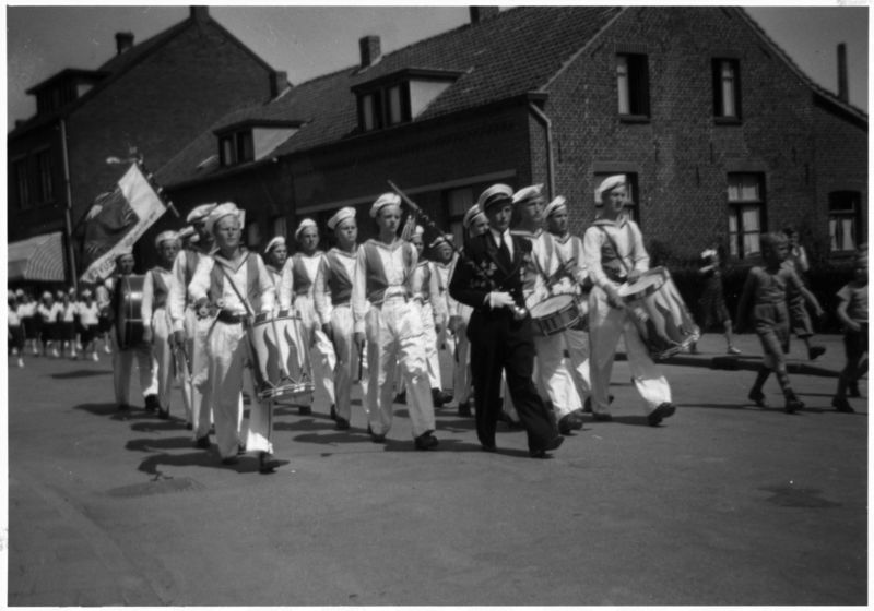 Verenigingen en organisaties | Het Trommel-en fluiterkorps St. Barbara o.l.v. tambour-maitre Bèr Dorssers | Keulseweg | Offenbeek | 1953 | ||||