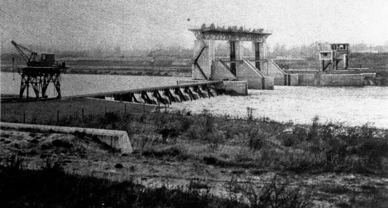 Vervoer overig | De stuw in Belfeld, een der tot de Maaskanalisatie behorende grote werken is sinds kort in gebruik (Anno 1929). | Aan de stuw | Belfeld | 1929 | ||||