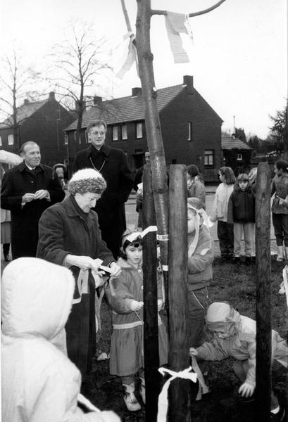 Gebeurtenissen | Bij de gelegenheid van de vijftigste verjaardag van Koningin Beatrix werd als blijvende herinnering ook in Reuver een lindeboom geplant. Deze kreeg een plaats op het plantsoen bij het St. Barbarabeeld aan Den Roover. Burgemeester Nuytens werd hierbij geassisteerd door de schoolkinderen. | Den Roover 8 | Reuver | 29-4-1988 | 1988 | |||