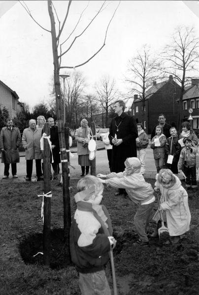 Gebeurtenissen | Bij de gelegenheid van de vijftigste verjaardag van Koningin Beatrix werd als blijvende herinnering ook in Reuver een lindeboom geplant. Deze kreeg een plaats op het plantsoen bij het St. Barbarabeeld aan Den Roover. Burgemeester Nuytens werd hierbij geassisteerd door de schoolkinderen. | Den Roover 8 | Reuver | 28-4-1988 | 1988 | |||