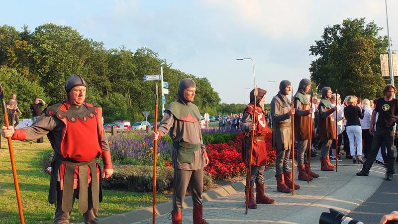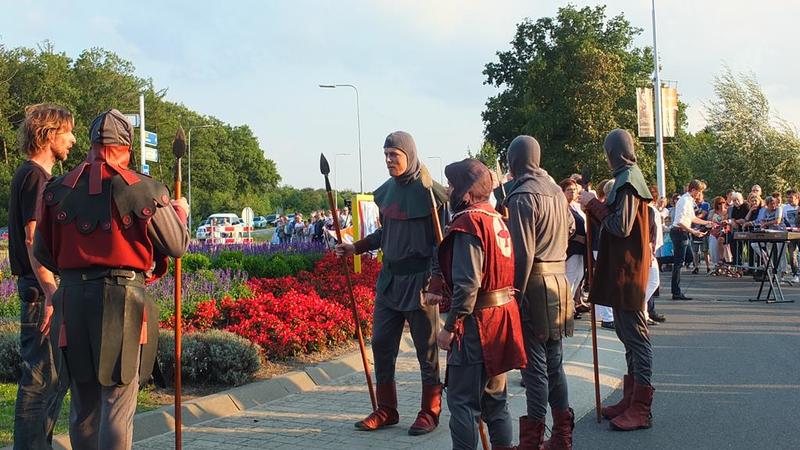De officiële opening van het Draaksteken 2016 en de officiële onthulling van de draak op de rotonde. De draak staat er al enkele jaren maar was nog nooit officieel onthuld. Eerste van links de legerhoofdman Twan Pouls. |