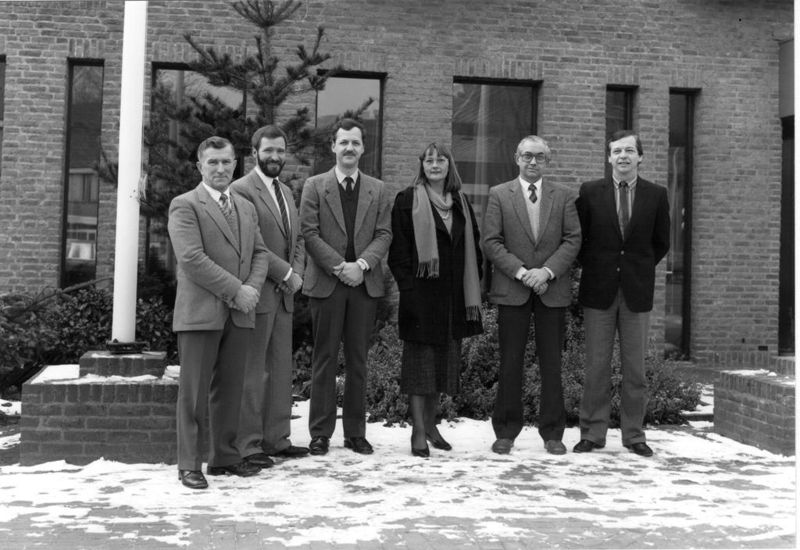 Gemeentehuis / Gemeentebestuur | Kandidaten voor de verkiezingen van de VGP (Verantwoorde Gemeente Politiek) uit 1986 met A. Görtz, Ton Verlijsdonk, Hans Beulen, T. Rutten-Peeters, L. Franssen en Ger Peulen, | Raadhuisplein 1 | Reuver | 20-2-1986 | 1986 | |||