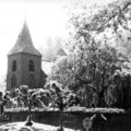 Dionysius kerk in Asselt in de winter. Het rozenkerkje wordt dit kerkje ook wel genoemd. |