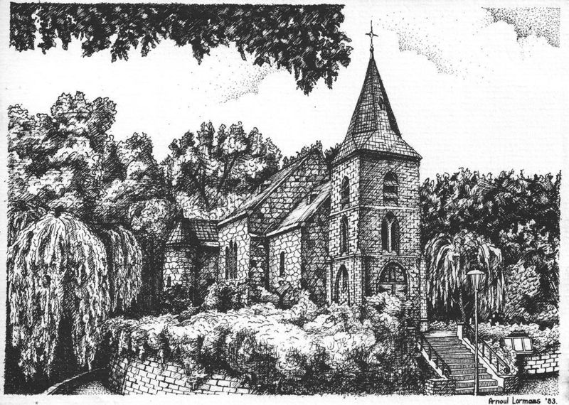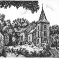 Dionysiuskerk in Asselt getekend door Arnoul Lormans Het rozenkerkje wordt dit kerkje ook wel genoemd. |
