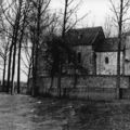 Dionysiuskerk in Asselt bij hoog water. Het rozenkerkje wordt dit kerkje ook wel genoemd. |