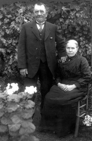 Diversen | Gerardus Schoolmeesters (geb. 1862) en Anna Maria Janssen (geb 1865) poseren in hun tuin. | Reuver | ||||||