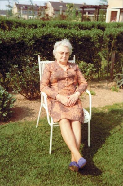 Diversen | Mevrouw Nellie Janssen - Tillemans zit lekker achterom te genieten van de zon. | Reuver | 1977 | |||||