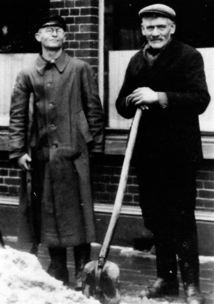 Café / Restaurant / Cafetaria | Frans Wijnands en Graad Lenssen ruimen de sneeuw op voor café Janssen aan de kerk | Pastoor Vranckenlaan 5 | Reuver | 1942 | ||||