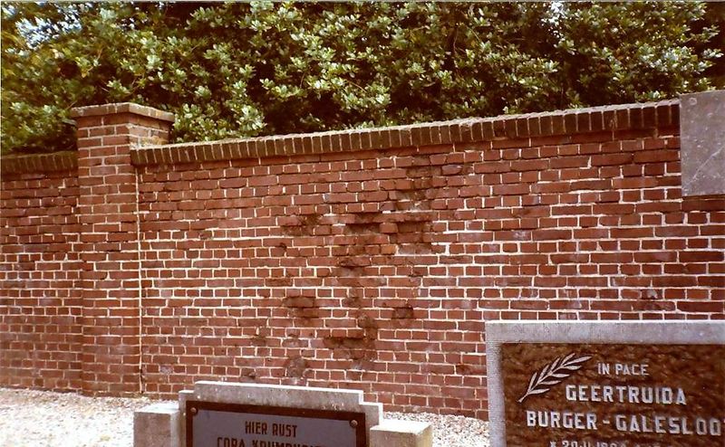 Oorlog | Duidelijk zijn hier de sporen te zien van granaatinslagen in de muren van het oude kerkhof. | Karel Doormanlaan 4a | Reuver | 1984 | ||||