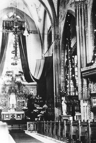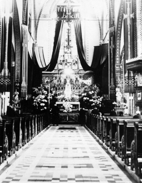 Kerk en religie | Feestelijk versierde Sint Lambertuskerk tijdens het 40-uren-gebed. | Karel Doormanlaan 2 | Reuver | 1934 | ||||