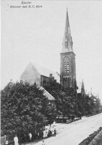 Kerk en religie | Prentbriefkaart met de Lambertuskerk en er achter het H. Hart klooster. | Pastoor Vranckenlaan 8 | Reuver | |||||