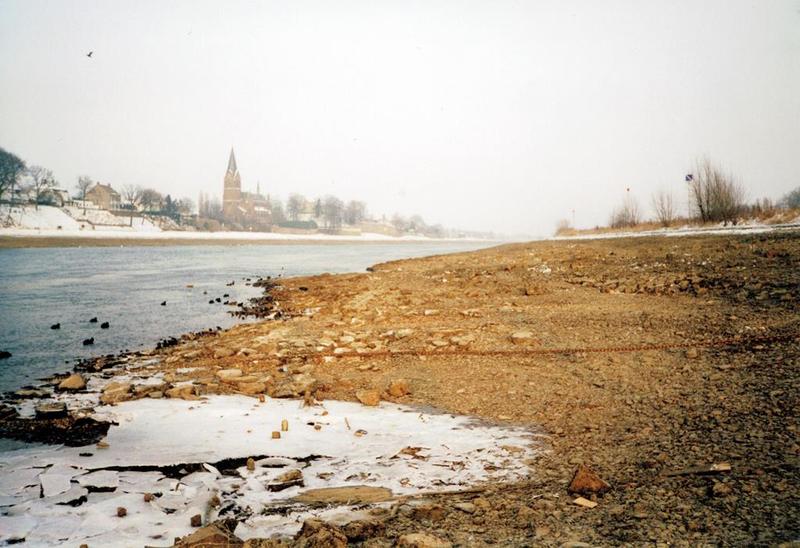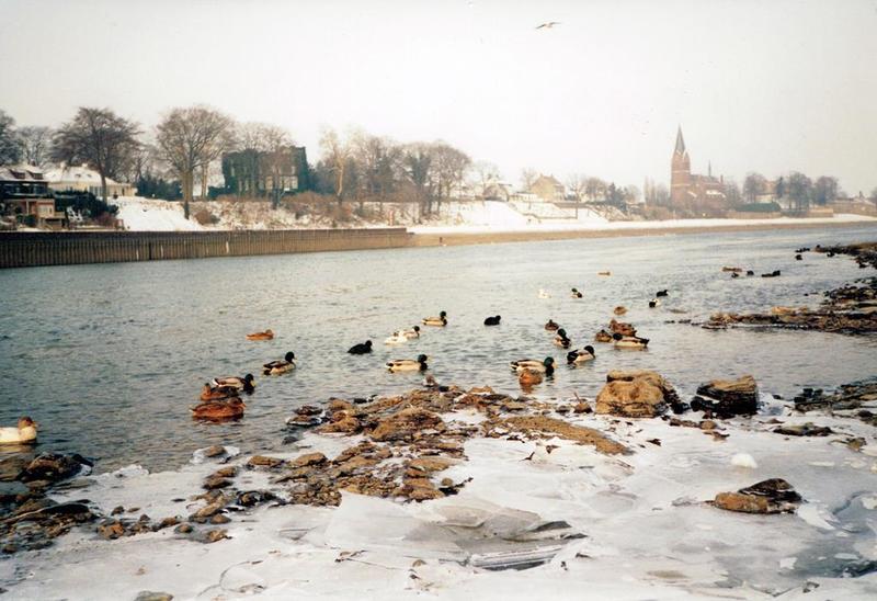 Natuur | De stuwen in de Maas waren in de winter vanwege ijsgang gestreken en daardoor hadden we een zeer lage waterstand. De foto is genomen nabij het veer. | Pont Kessel - Beesel | Reuver | Januari 1997 | ||||