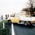 Gebeurtenissen | Hoog water van de Maas ter hoogte van de onderdoorgang van de Schelkensbeek onder de Rijksweg. Op de voorgrond kijkt John Kuipers vanaf de auto van de gemeente toe. | Rijksweg-Zuid | Reuver | Januari 1993 | ||||