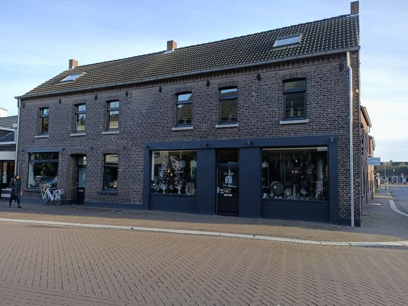Landelijk Brocant heet de winkel van Shirley Aangenend - Underwood. De winkel werd eind 2019 geopend na een grondige verbouwing waarbij twee panden werden samengevoegd. De panden hebben een rijk verleden. Zo zat op de hoek de antiekwinkel van Hermans, de schoenwinkel van Pollen en Alexandria pizzeria. In het linker deel zat schoenmaker Feller en een frietzaak van Frite An (van der Velden). Op deze plaats lag vroeger de brouwerij - branderij van Gisbertus Stoffels (zie ID 12852.) |