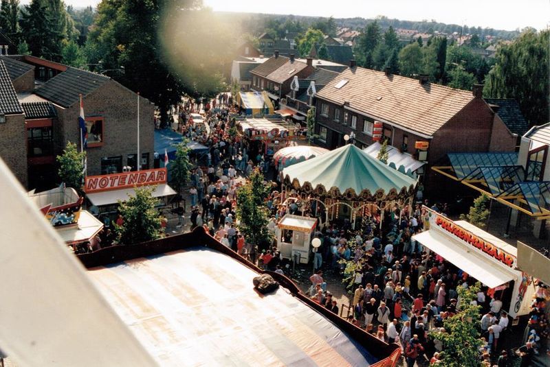 Gebeurtenissen | De kermis op de markt in Reuver gezien vanaf het reuzenrad. | Raadhuisplein | Reuver | 1992 | ||||