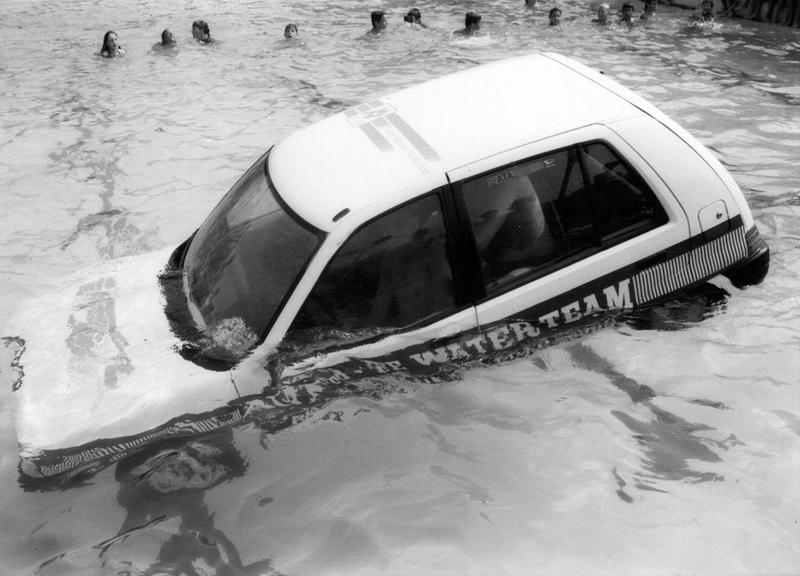 Sport & Recreatie | Onder grote belangstelling werd er een cursus "Auto te water" gegeven door Veilig Verkeer Nederland in zwembad "de Bercken". De deelnemers leerden hoe uit een te water geraakte auto te ontsnappen. | Bösdaellaan 2 | Reuver | 11-8-1988 | 1988 | |||