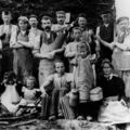 Medewerkers van de "Pannesjop" Feijen - Relouw uit Tegelen in 1901. Van links naar rechts. Achterste rij: 1 Sjeng Huijs, 2 Tinus Sijbers, 3 Willem v. Horck, 4 Giel Hekkens, 5 Willem Stoffels, 6 Gradus Relouw, 7 Nikloas Hekkens, 8 Frans Faassen, 9 Hen Feijen. 10 Klaòske Feijen, 11 Lotje Leenen, 12 Hens Hekkens. Voorste rij: 1 Stien Schell, 2 Ida Feijen, 3 Nelke Relouw, 4 Marie Stoffels, 5 Maris Relouw, 6 Grit Flos |