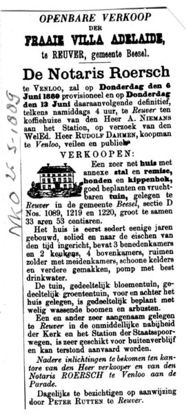 In 1880 stond de villa Adelaide(later villa Paquay genoemd) tijdens een openbare verkoop te koop. De villa was destijds eigendom van Rudoplh Dahmen. De overige geschiedenis van de villa is te lezen bij de foto met ID 8529. Het hoogste bod werd gedaan door de firma Steegh &Esser, een maatschappij die zich bezighield met turfsteken in Helenaveen. Zij hadden echter ook belangstelling voor kleiwinning in Bracht. Zie Ina “Germes-Dohmen: Auf den Ton kommt es an. Misschien is dat de reden geweest voo Meer ... |
