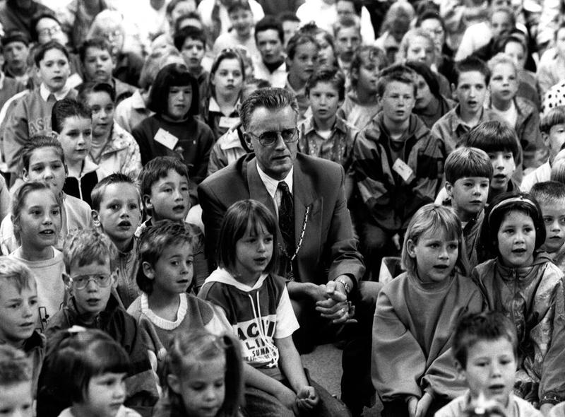 Onderwijs | Burgemeester Nuytens tussen de schooljeugd bij heropening van de Wildenkampschool. Er waren drie extra lokalen bij gebouwd vanwege het groeiend aantal schoolkinderen. | Burgemeester Moorenstraat 4 | Reuver | 7-6-1991 | 1991 | |||