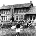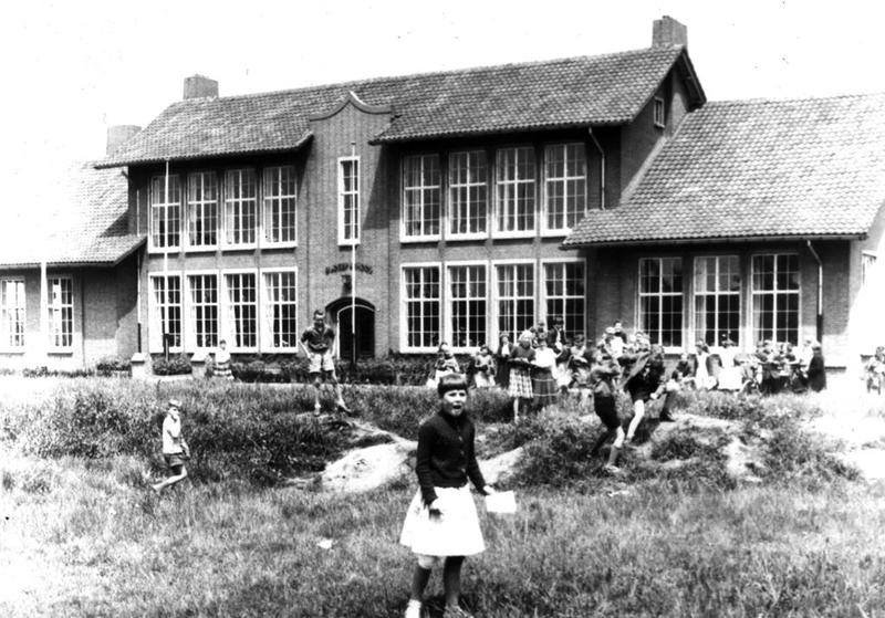 Onderwijs | Een foto met spelende kinderen vóór de basisschool St. Jozef in Offenbeek. De betreffende school werd afgebroken en op deze plek staat nu de openbare school "De Meander". Het meisje op de voorgrond is Annie Jacobs. | Sint jozefweg 28 | Offenbeek | 5-7-1958 | 1958 | |||