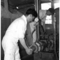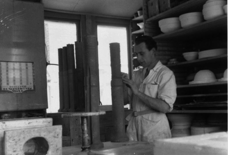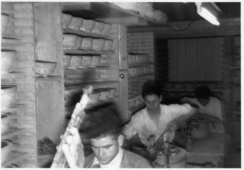 De Steenbok De vormafdeling. Hier worden vormen gemaakt. Gietklei wordt in de vormen voor bloembakken gegoten. |