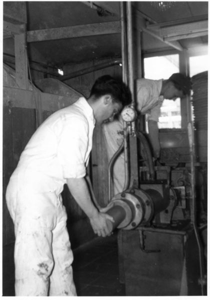 De Steenbok. Filterpers. Hier wordt het water uit de klei geperst. |