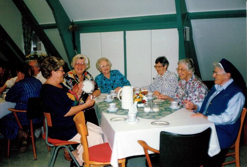 Kerk en religie | Gezellig samen koffie drinken in de werkwinkel van het H.Hart Klooster | Pastoor Vranckenlaan 4 | Reuver | 1995 | ||||