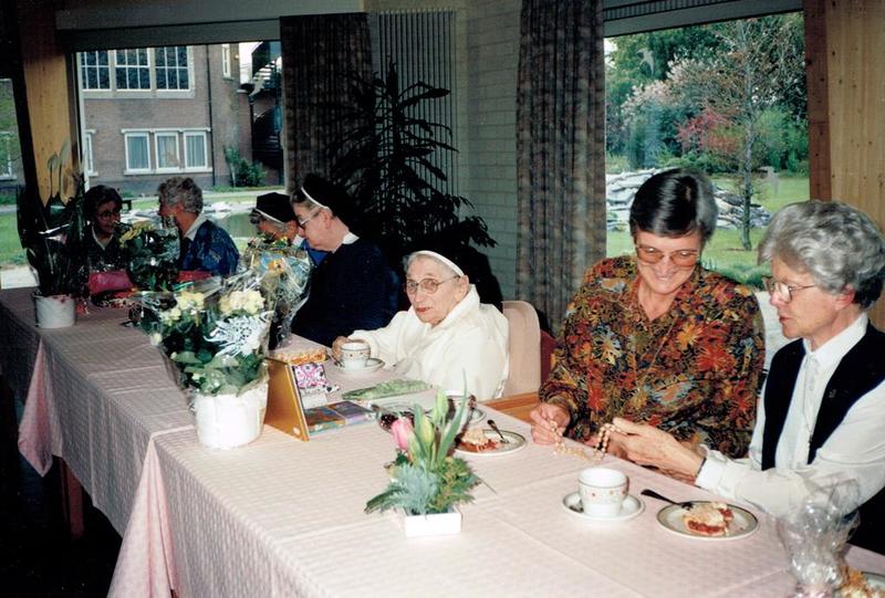 Kerk en religie | Feest in het H.Hart-klooster. Zes zusters vierden gezamenlijk hun 50ste en 60ste professiefeest. Links zuster Cypriana. | Pastoor Vranckenlaan 4 | Reuver | 26-4-1991 | 1991 | |||