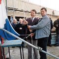 Medio november werd het hoogste punt bereikt bij de bouw van het nieuwe sociaal-cultureel centrum "de Schakel" aan de Broeklaan in Reuver. De voorzitter van het bestuur van "de Schakel", de heer Wim Janssen (l , voorzitter), zorgde er in de aanwezigheid van een groot aantal genodigden dat de driekleur in top ging. |