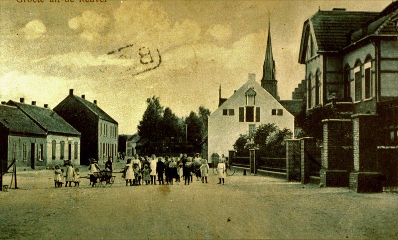 Diversen | Een van de oudste groepsfoto‘s van Reuver. Ze is hoogstwaarschijnlijk genomen bij het Gerardusstraatje op de binnenplaats van het huis van Caris. De familie Caris staat er op. Links beneden in het midden Sjang Caris. Op de achtergrond de boerderij van Geraadts, nu eigendom van Herbert van Leipsig. Er staan ook mensen op uit de “Wilhelminalaan”. Bijvoorbeeld Johannes Henssen, de man met de pet onder de schoorsteen. Hij woonde op de hoek van de Wilhelminalaan naar de toenmalige spoorwegovergang. Meer ... | Gerardusstraat 1 | Reuver | 1905 | ||||