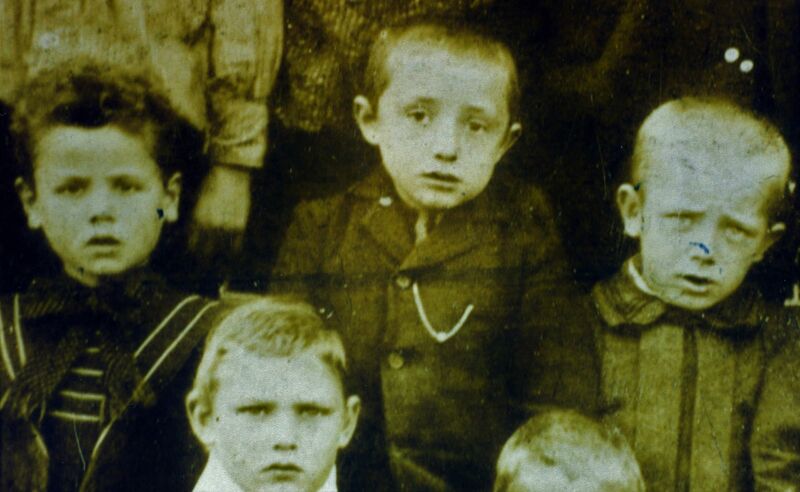 Een uitsnede uit een schoolfoto van 1902 van de openbare jongensschool St. Lambertus in Reuver (zie ID 5288). Links Frits Muurmans. In het midden Theodoor Verhaegh. Hij was later timmerman en woonde aan de Keulseweg (nu Agatha Stoffels, fotogafie). In mijn jonge jaren ( Jan Ickenroth) haalden we bij hem voor 5 cent vliegerlatjes. Linksonder is Ben Vaessen, vader van Coen Vaessen en grootvader van een van de laatste Carnavalsprinsen. |