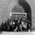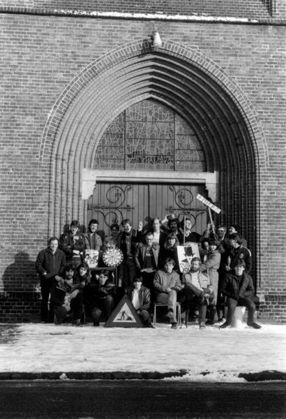 Verenigingen en organisaties | De leden van het O.J.C. Piejus vóór de St. Lambertuskerk. Links Frans v. Gassel | Karel Doormanlaan 2 | Reuver | 1976 | ||||