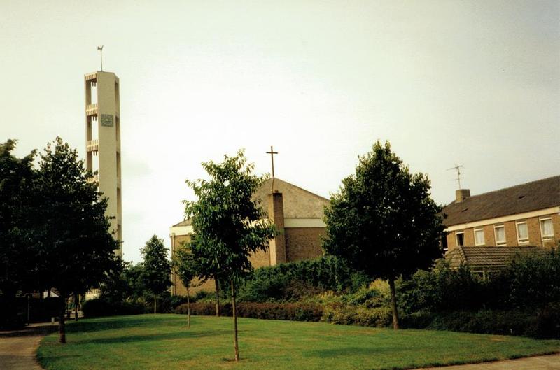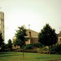 Kerk en religie | Uitzicht op de Fatimakerk vanaf de Pastoor Ceijssenstraat | Pastoor Ceijssenstraat 2a | Offenbeek | 31-8-1989 | 1989 | |||