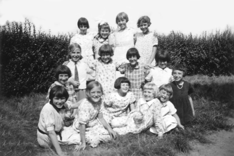 Foto van een groep Reuverse meisjes omstreeks 1931. Bekende namen zijn met het beroep van hun vaders: Jonnie Hoogma (van de politie), Mia Geurts, Toke Muisers, Ida Brinkman (schilder) Truus Geenen, Nelly Helwegen, Grieda Hoogma (van de politie), Rika Verhaegh (Timmerman), Diet Verhaegh, Mia Hendrix (van de meubelmaker), Mia Kuster . Ida Vullers, Grada Niessen, Tiennie ?, Juliet ? Eventuele aanvullingen zijn welkom, net zoals de verwijzingen naar de positie op de foto. Namen fam. Hendrix Meer ... |