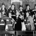 In 1958 werd Jan Maessen als prins Jan uitgeroepen. Links staat H. Zeegers. Nar is H. Knops. Verder staar v.l.n.r. Annie Pijpers, Tila Maessen, P. Knops, Jacobus Peeters en Jan van Rossum. Onderste rij v.l.n.r. Toos Ronckers, Lia Munnichs, Emilia Jaspar, Mia van Buggenum, Frits van Heur en Jan Kremers. |
