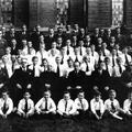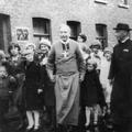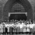 Kerk en religie | Pastoor Viegen neemt afscheid van de St. Lambertusparochie en poseert hier samen met het kerkkoor voor de St. Lambertuskerk. | Karel Doormanlaan 2 | Reuver | 1946 | ||||