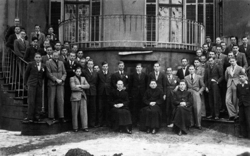 Direct na de Tweede Wereldoorlog en in de vijftiger jaren was het de gewoonste zaak van de wereld dat de jonge mannen op retraite gingen, alvorens men de dienstplicht ging vervullen Deze jongens allen geboren in of omstreeks 1927 zijn hier op retraite in Roermond o.l.v. Polis Rembrandie bij de Paters Passionisten in Echt - Maria Hoop. Op de foto zijn onder anderen te zien: Jan Vullers - Martin v,d, Avoort - Sjaen op 't Rood - Wiel Feuler - Lambert van Buggenum - Pierre van Willick - Sjeng J Meer ... |