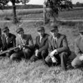 Oud Limburgs Schuttersfeest te (Kelpen-)Oler. Staande vlnr: Har Simons, Maan Crins, Jac Nijssen en Jan Geerlings. Hurkend vlnr: Toon Smeets, Jeu Smeets. |