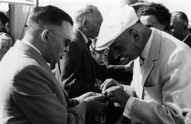 Verenigingen en organisaties | Oud Limburgs Schuttersfeest met rechts burgemeester Claessen. | Bussereindseweg 55 | Beesel | 1957 | ||||